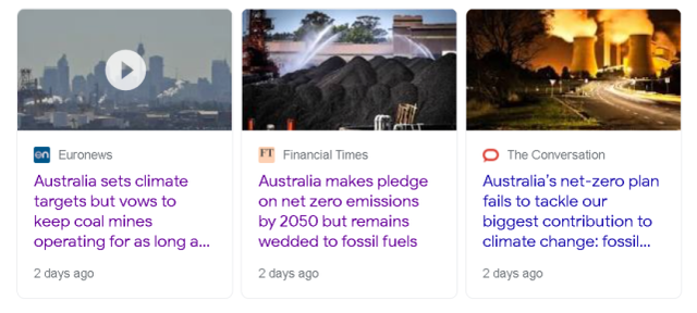 比如,澳大利亚一边说会自己正在致力于在2050年时实现“净零排放”,一边却又继续允许煤矿的运作,并通过燃煤来发电。
