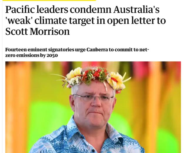 澳大利亚这种不负责任的做法,还引起了许多南太平洋邻国的不满,认为澳大利亚只在乎自己的自私利益,却并不在乎这些一旦海平面上升就可能会遭遇灭顶之灾的邻居的死活。