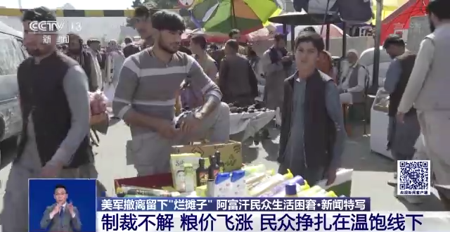 近期受美国冻结阿富汗海外资产的影响,阿富汗国内物价上涨迅速,特别是粮食价格上涨让当地人的基本生活愈加困难。扎哈尔是喀布尔集市的一名小商贩,他和孩子们靠每天起早贪黑在市场上卖东西,才勉强糊口。