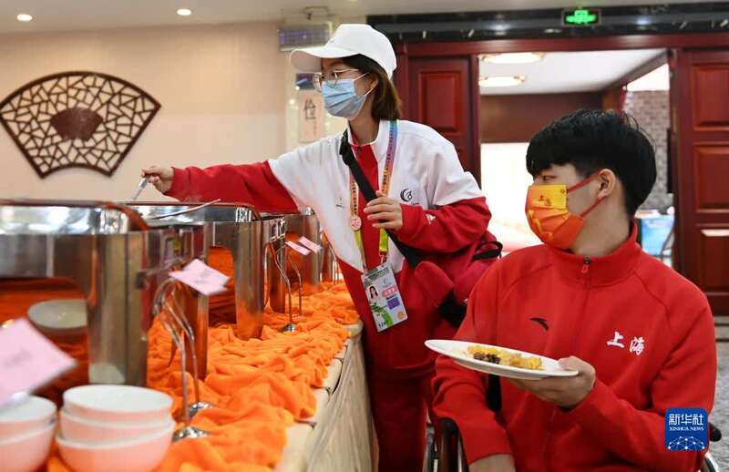 在接待残特奥会运动员的酒店,记者看到餐厅提供的菜品品类丰富、营养搭配均衡,组委会食品保障组也对食材从入食品总仓到餐桌的全流程进行管理和监控,每天对食材和菜品进行抽样检测。对行动不便的运动员,餐厅还提供一对一取餐服务。对视障运动员,工作人员会介绍每道菜品,并协助运动员取餐。