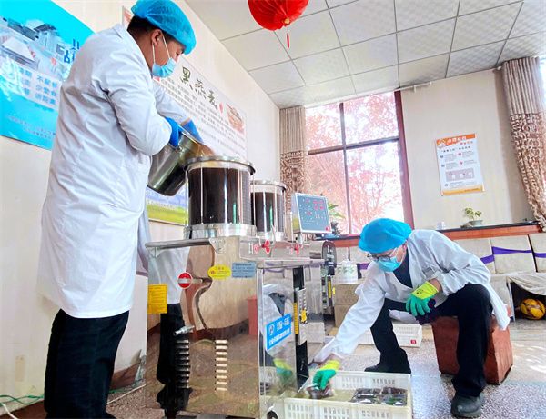 2021年10月29日,甘肃张掖,甘州区人民医院医生正在熬制“甘肃方剂”中药,助力疫情防控。