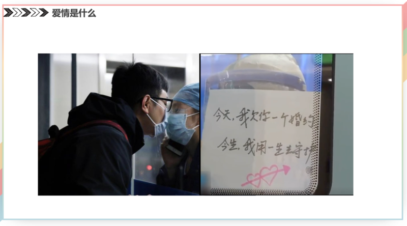 对实验中的“恒河猴”来说,爱意与生俱来,接触是本能;对援鄂医护夫妻来说,爱情是一个支柱;对双向暗恋的人来说,爱是想接触又不敢靠近。