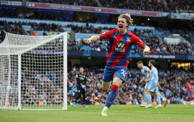 10月30日,水晶宫队客场以2比0战胜曼城队。水晶宫队球员加拉格尔庆祝进球。新华社/路透