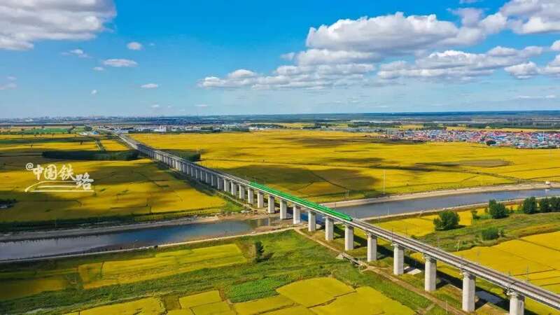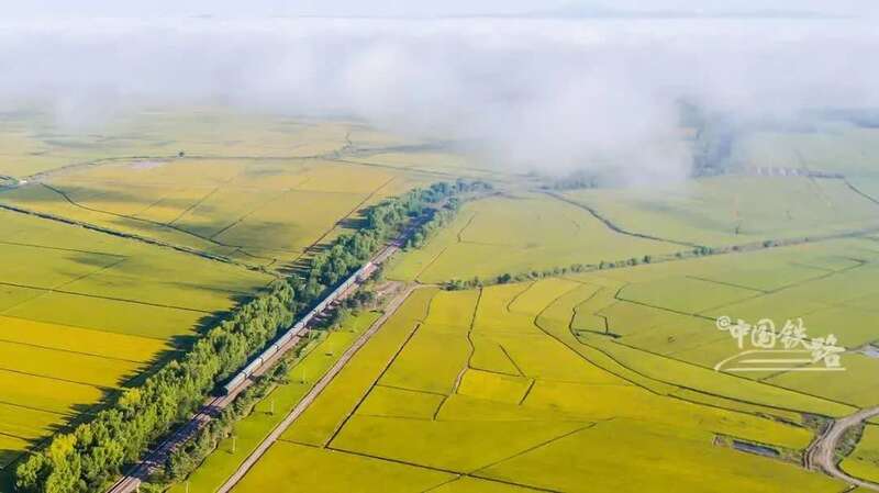 列车驶过丰收的三江平原。隋玉鑫 摄