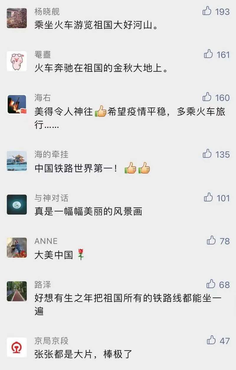 @吴新毅:从开往春天的列车到开往秋天的列车,都是祖国的大好河山,也体现了中国速度,点赞!