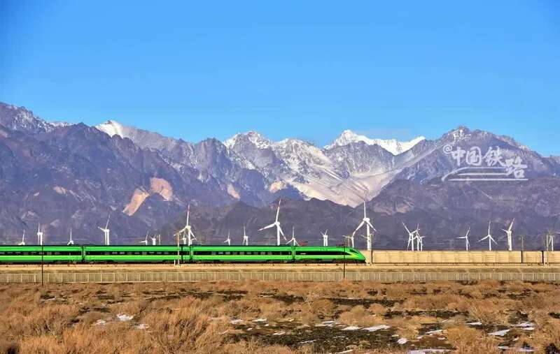 疾驰在新疆天山脚下的复兴号。摆风亮 摄