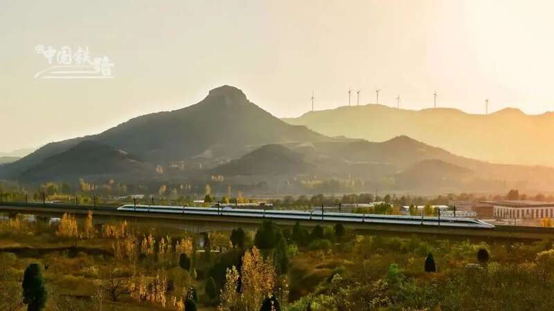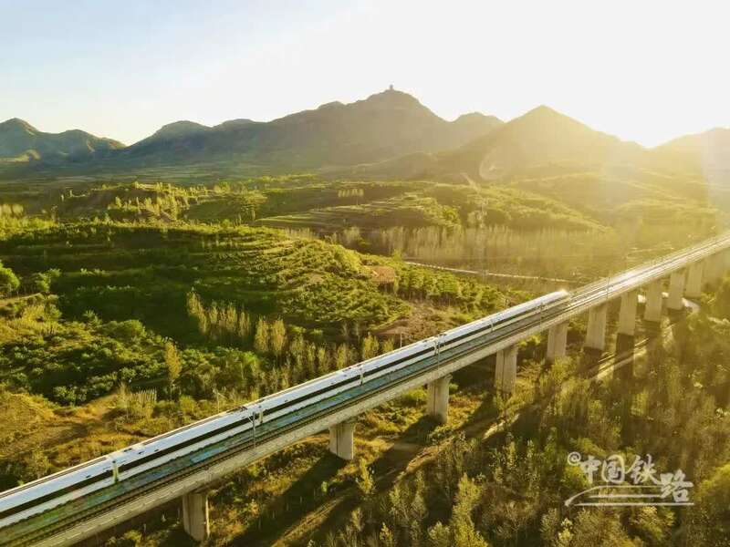 日落时分,飞驰在津秦高铁上的复兴号。赵里巍 摄