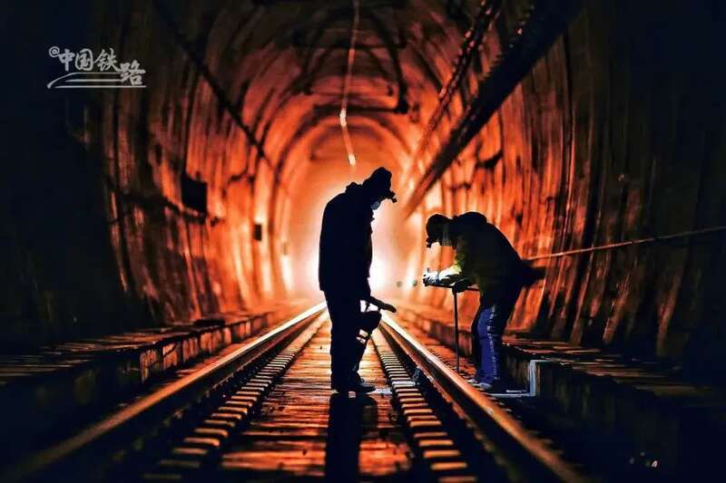 格库铁路阿尔金山隧道内,铁路人对线路进行日常维护。摆风亮 摄