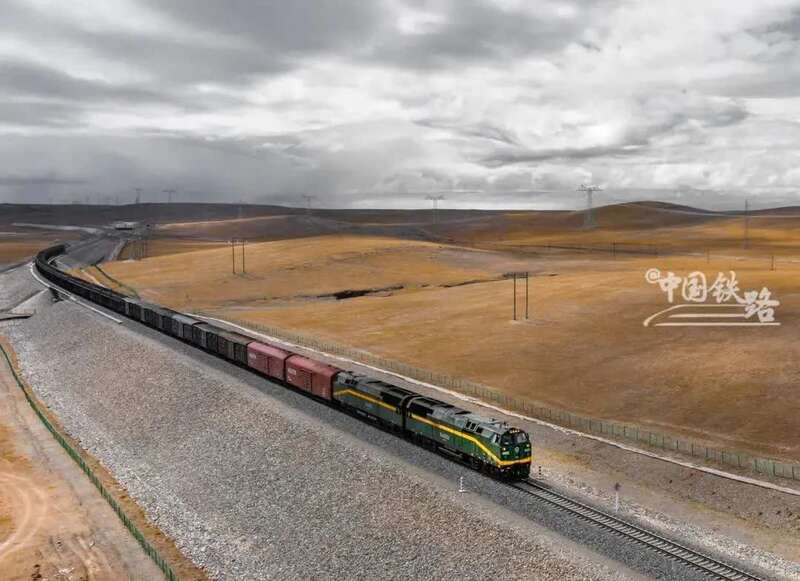 列车运行在青藏铁路可可西里无人区区段。李泳锌 摄