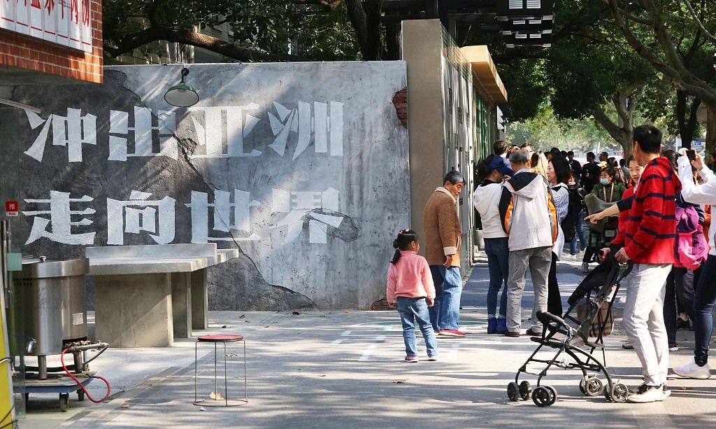2021年10月31日,南京,南湖东路,80年代的起居室、客厅、小卖铺、理发店等特色体验空间。