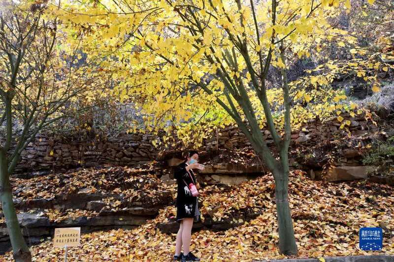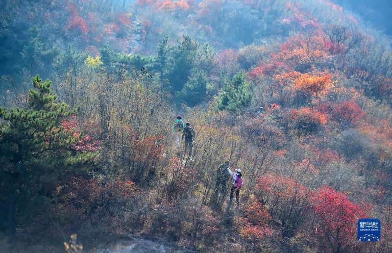 10月31日,在河北省石家庄市井陉县辛庄乡仙台山景区,游客在赏景游玩。