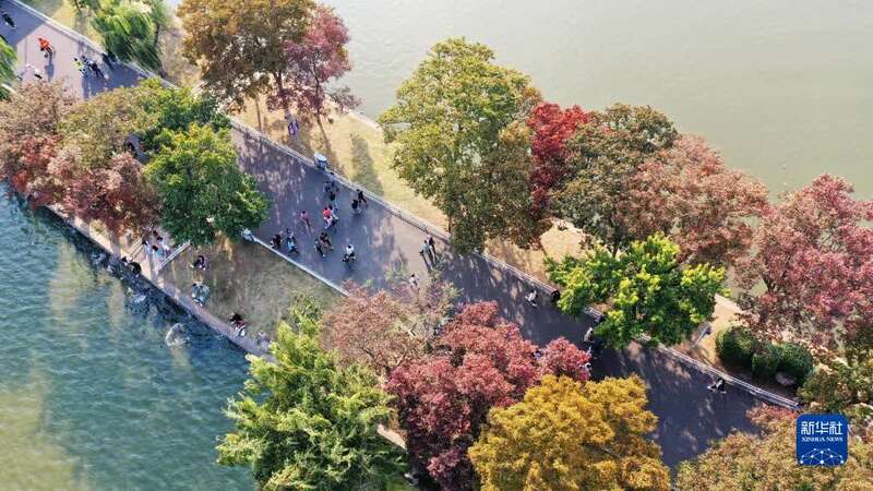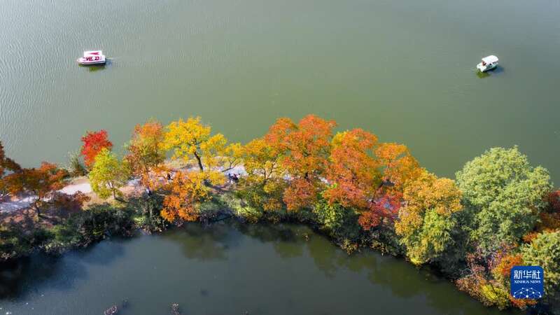 10月31日,游客在南京玄武湖公园赏秋游玩(无人机照片)。