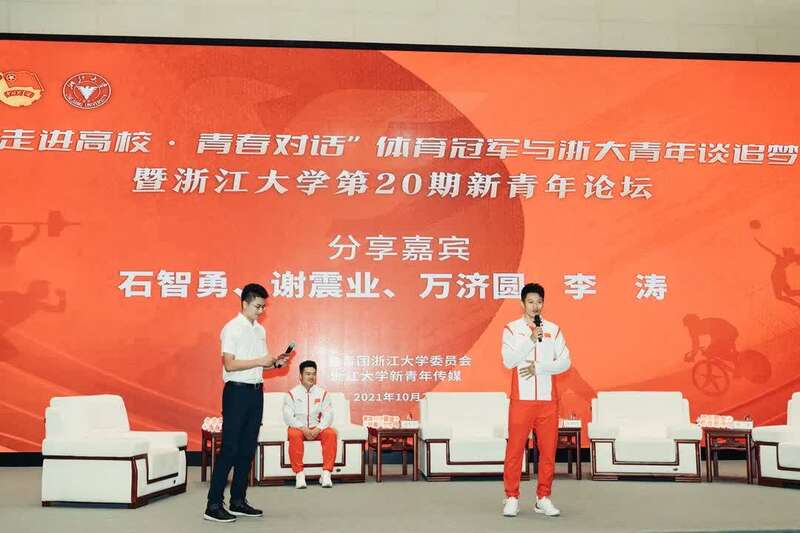 虽已获得里约、东京两届奥运会金牌,并成为举重男子73公斤级世界纪录的保持者,但石智勇认为自己依旧在追梦的路上。这个举重路上的奋斗者,从广西桂林的小乡村出发,来到宁波、杭州,直至走向更加广阔的世界舞台。很小的时候便背井离乡,石智勇戏称自己为“麻袋少年”。“总有一天,我的照片也要出现在这面墙上”,体校上的冠军墙在他的心中埋下了梦想的种子。为此,尽管在一路上遭遇挫折,甚至因为腰伤被队医认定为“难以再继续职业生涯”,他也依旧没有放弃。直至里约奥运会上夺得金牌,石智勇的梦想最终开花结果。他勉励同学们:“要不断地给自己树立更高的目标,一个一个地突破,追梦永不停息”。