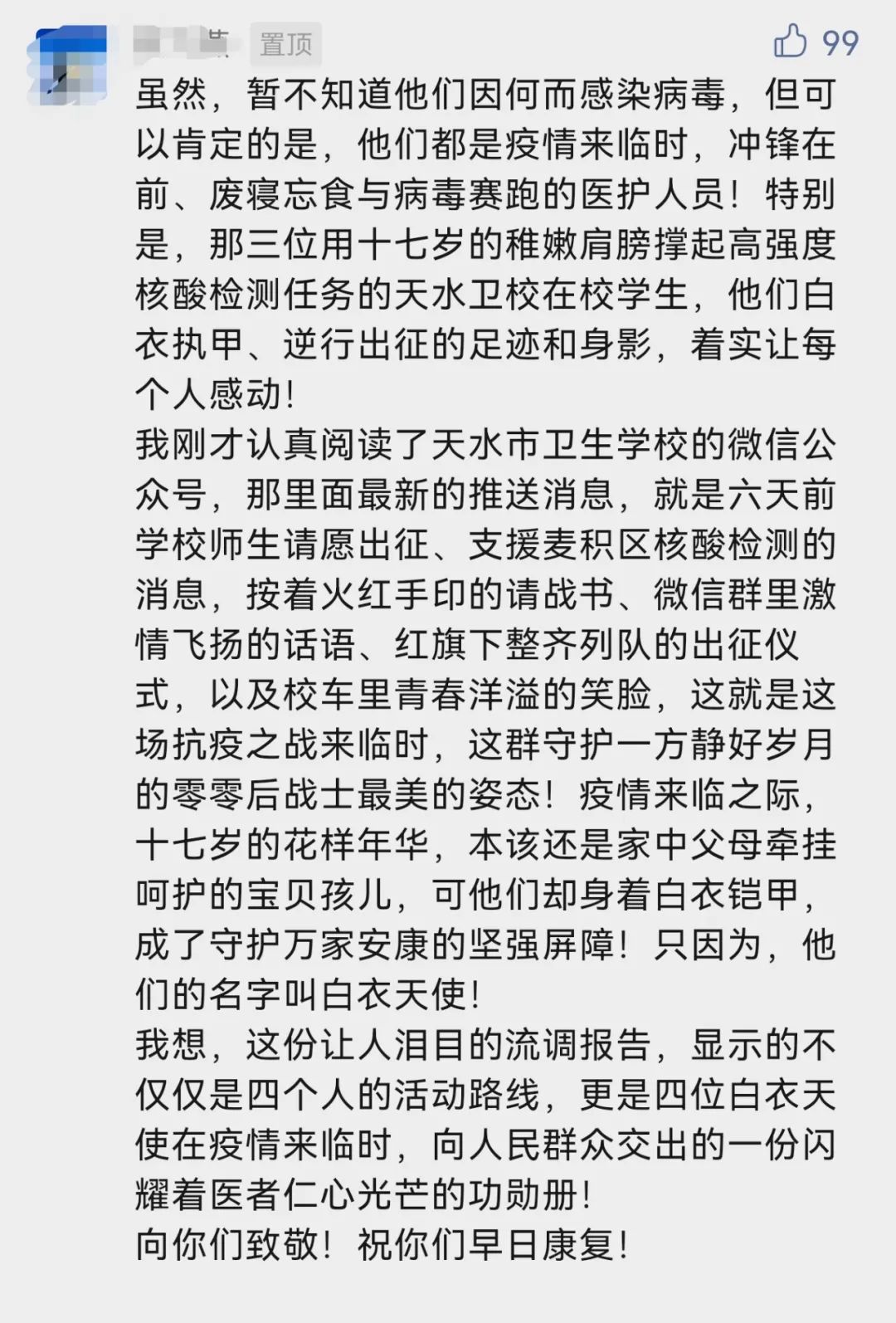 昨晚,甘肃省天水市公布4例新增确诊病例活动轨迹,其中3例为天水市卫校学生,17岁,均参加过核酸采样志愿服务;另外1例为麦积区花牛镇中心卫生院职工,开展过核酸检测标本接转工作。