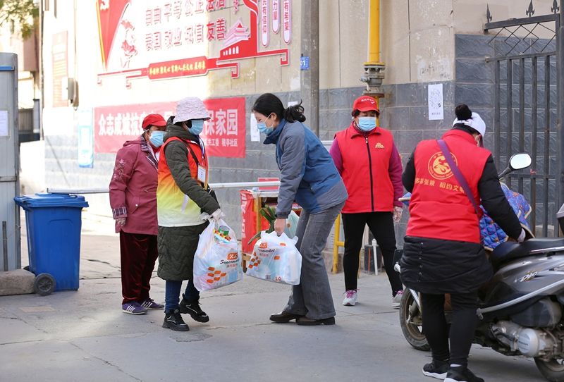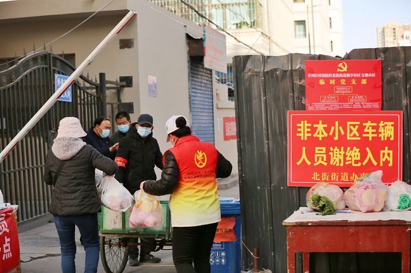 甘肃张掖:社区封闭管控 志愿者为居民运送生活物资