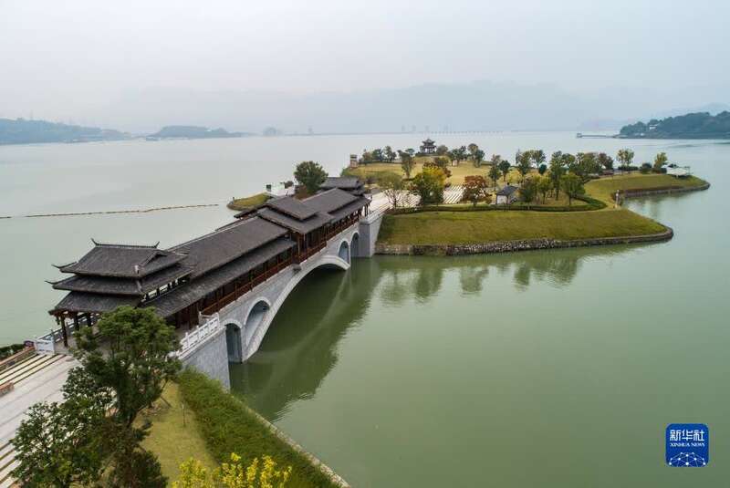 10月31日拍摄的位于三峡大坝附近的湖北省秭归县木鱼岛公园(无人机照片)。