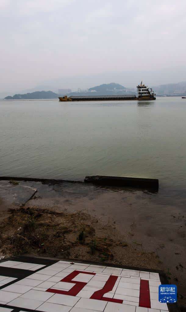 10月31日,船舶从三峡大坝上游太平溪水文标尺前开过。