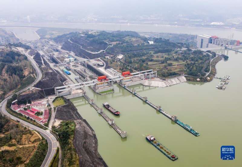10月31日,船舶有序通过三峡五级船闸(无人机照片)。