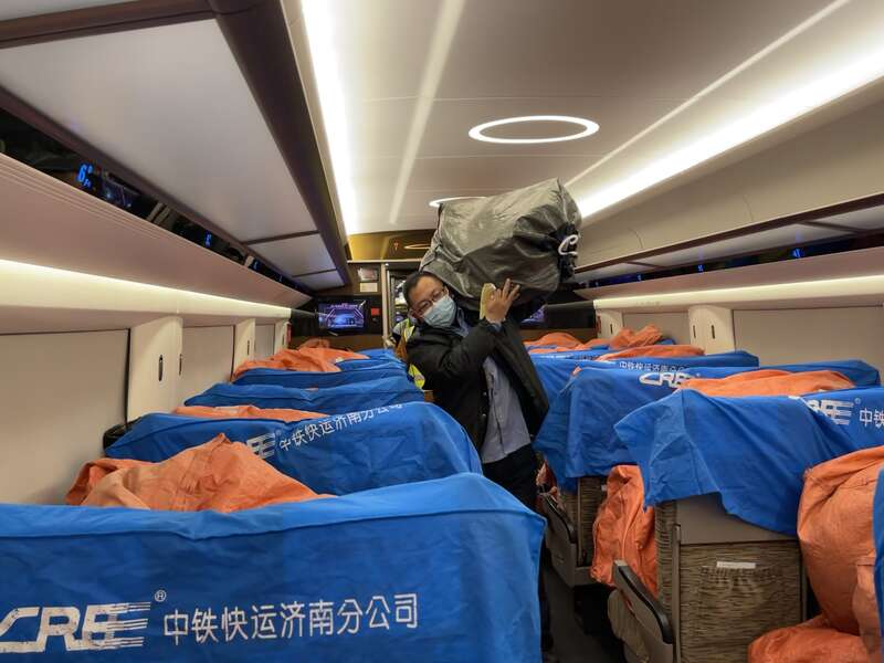 “双11”电商黄金周期间,每日开行济南西至上海虹桥、福州站间高铁快运始发终到列车2趟,济南西至北京南间载货动车组确认列车1趟,青岛至厦门、潍坊至北京南高铁快运始发终到列车2趟,承运发往北京、上海、厦门等方向以及来自上海等方向集中到达的动车组预留车厢的高铁快件。