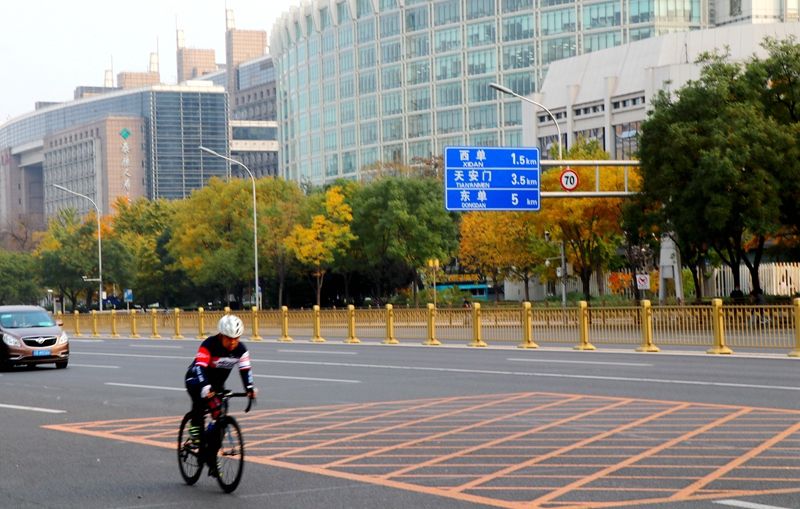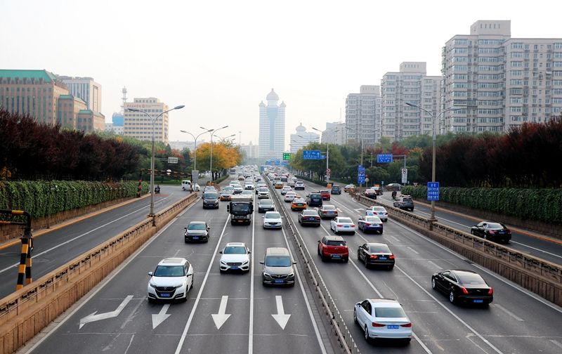 2021年11月1日,实拍北京街头,车辆各行其道,秩序井然。