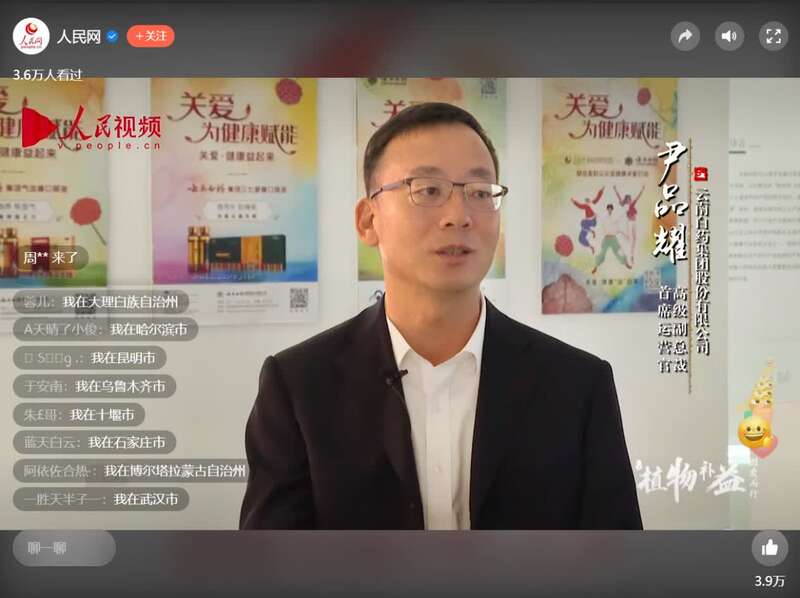 在10月28日的“云南白药三七探秘之旅”直播中,人民网主持人带领网友来到云南白药数字三七产业园,探访云南白药在文山新建的智能化工厂,感受云南白药如何通过科技化、数字化、智能化全面赋能中医药健康产业,发挥三七的独特价值与功效。