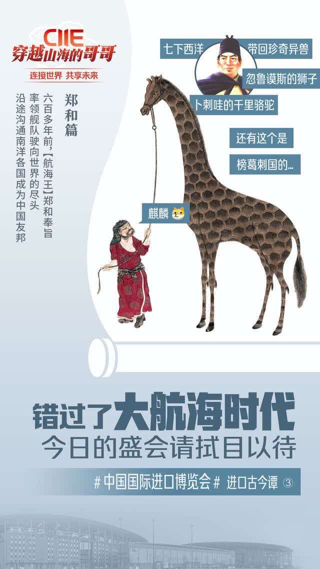 曾开启中国古代史上短暂的“航海时代”。1405年(明永乐三年)至1424年(永乐二十二年),六次作为正使太监下西洋。1430年(宣德五年)受命第七次下西洋。这段时期内,周边不少国家在郑和下西洋后慕名来华,像榜葛剌国、麻林国、阿丹国等纷纷带来了当时罕见的长颈鹿,明人误称为“麒麟”。