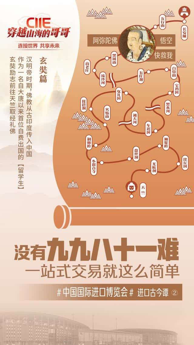 少时出家,学习各种经论,因感各派学说不一,于唐贞观年间西行求法。从长安出发,一路辗转至印度佛教中心那烂陀寺学习。史书记载,玄奘西行求法,往返十七年,旅程五万里,所历“百有三十八国”,带回大小乘佛教经律论共520夹,657部。《西游记》中的唐僧即以玄奘为原型。