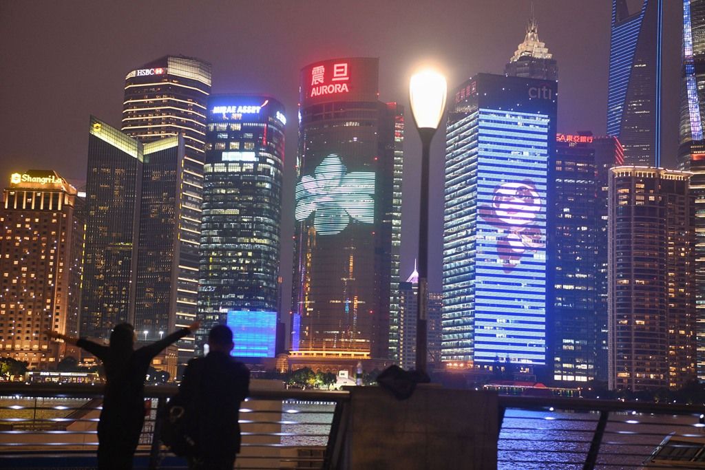 2021年11月4日,第四届中国国际进口博览会暨虹桥国际经济论坛开幕式在上海举行,黄浦江畔上演灯光秀,两岸建筑披上绚丽光影,与江水交相辉映,吸引众多市民游客观赏拍摄。