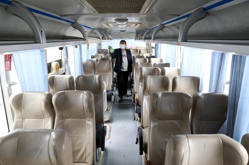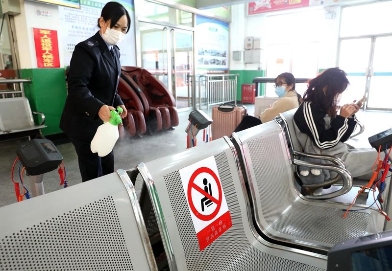 2021年11月5日,河北省石家庄市各客运站加强疫情防控各项措施,加大站内消杀频次,设置间隔候车座位,避免人群聚集,确保旅客出行安全。