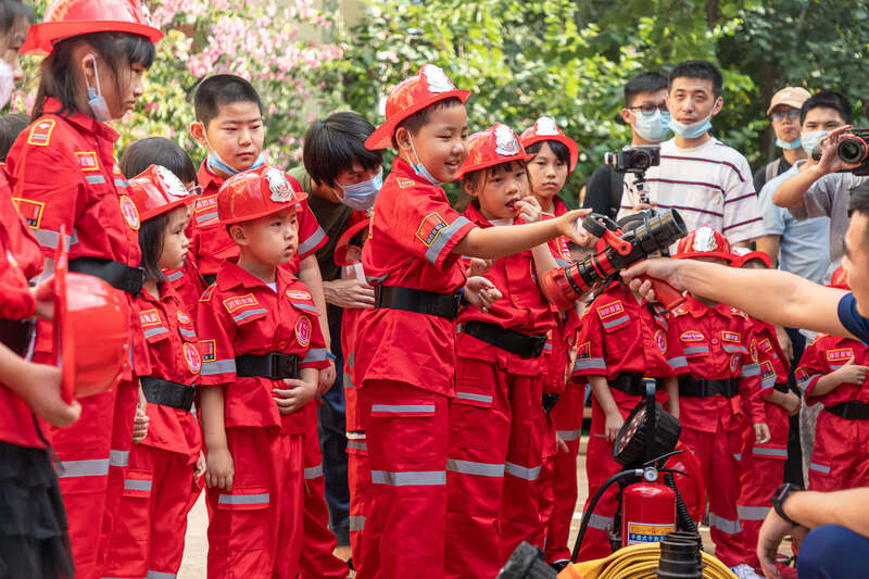 伴随燃起的“火焰和浓烟”,警铃声中,小朋友们快速换上消防服、戴上安全头盔、背上空气呼吸器,抬起准备好的担架,冲进“火场”,当起了小小消防员。最终,成功地将可爱的小动物玩偶们一一救出。不少小朋友表示,“长大了也要当一名消防员,不怕浓烟不怕危险,勇敢维护城市安全”。