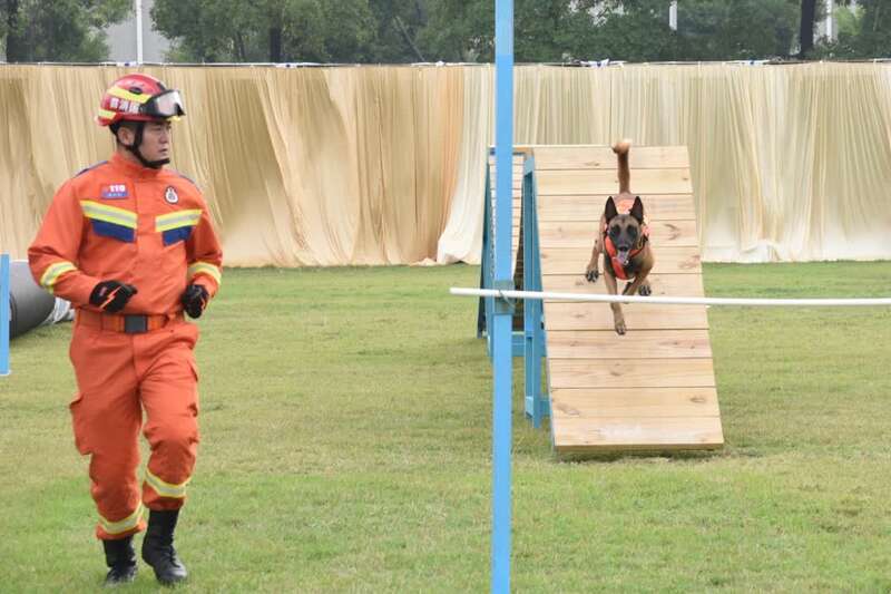 在中国救援广东机动专业支队现场,展示了消防摩托车、通讯无人机、救援机器人等广东先进消防救援设施、器材;消防员演示了高空救援、障碍物破拆等多个项目;新晋全国消防行业职业技能大赛搜救犬训导员竞赛项目冠军韩悌泽,带领搜救犬杰克开展了搜救表演。