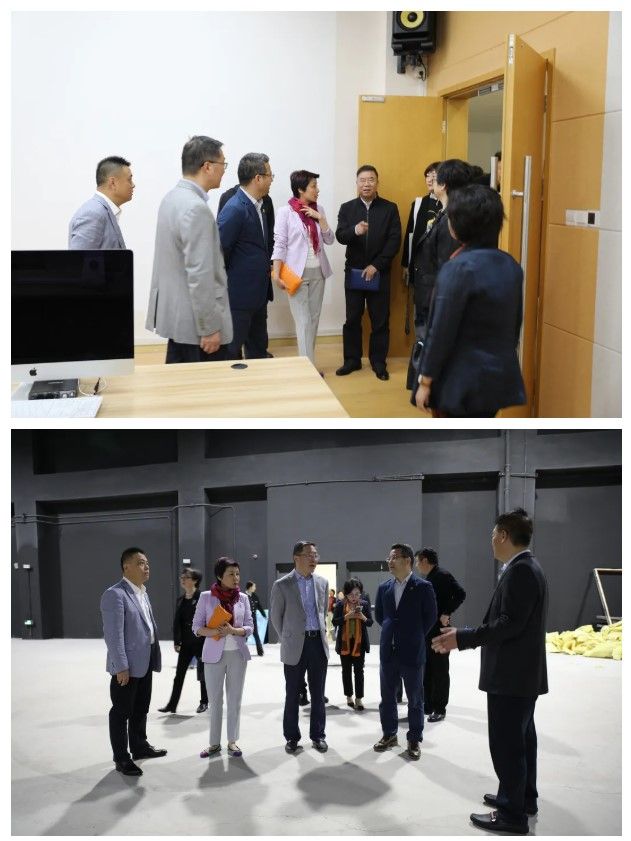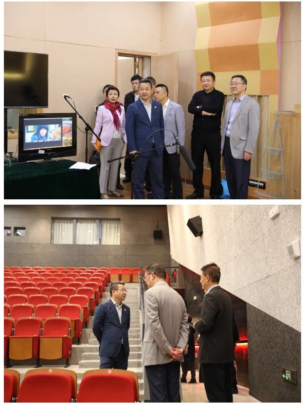 王健儿一行在昌林路校区参观了剧院、摄影棚、放映厅、录音棚等各类教学设施。