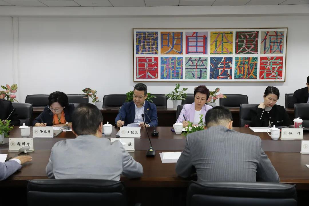 参观后,王健儿一行同上海戏剧学院领导及相关部门负责人进行了座谈。座谈会由上海戏剧学院党委副书记、副院长张伟令主持。