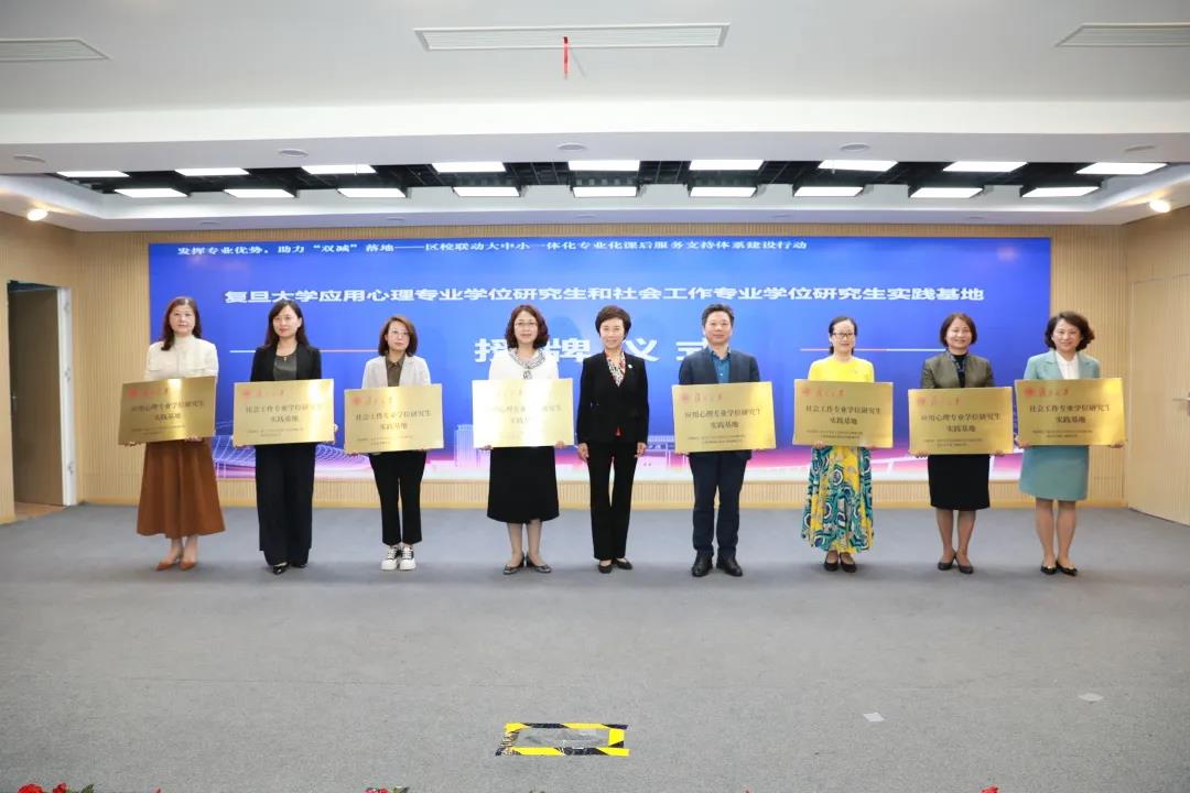 会上,焦扬为复旦大学第二附属学校、上海市杨浦区教育学院附属中学、上海市育鹰学校、上海市杨浦区复旦科技园小学等四所复旦大学应用心理专业学位研究生和社会工作专业学位研究生实践基地授牌。