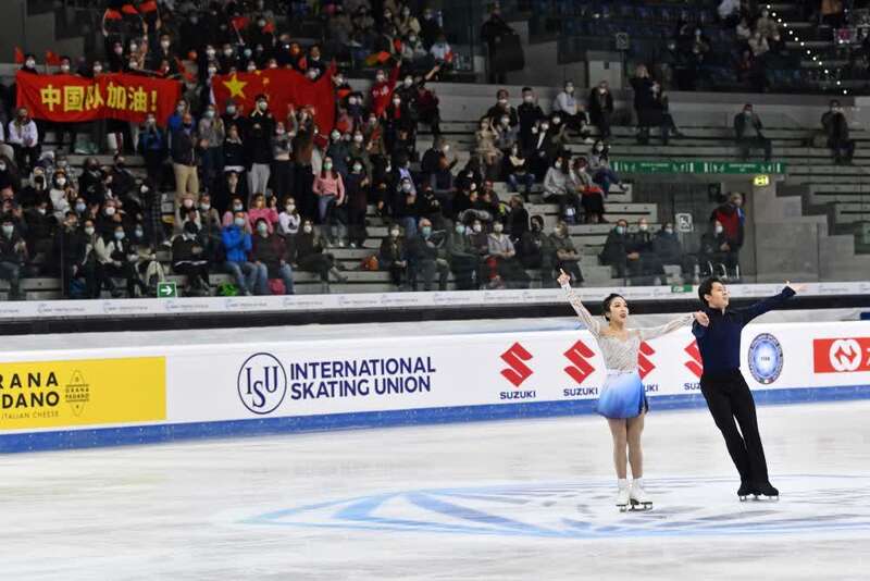 图为11月6日,隋文静(右)/韩聪在自由滑比赛中