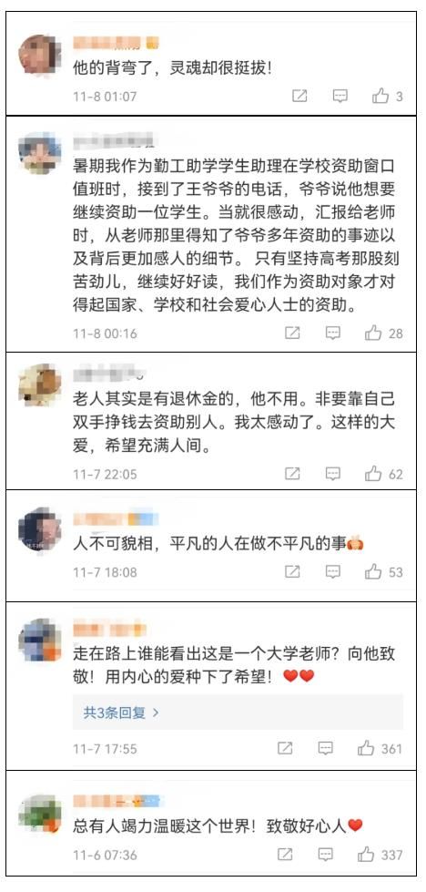 浙江大学89岁退休教师王坤森,从2012年至今已资助6万余元帮4人完成学业。老人说,资助的钱是自己拾荒所得,目前正准备资助第5个学生。自己资助过的学生现在也开始帮助其他人。