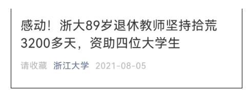 近日,“浙大89岁退休教师拾荒捐助贫困生”的事迹在网络上刷屏,无数网友为老人点赞。