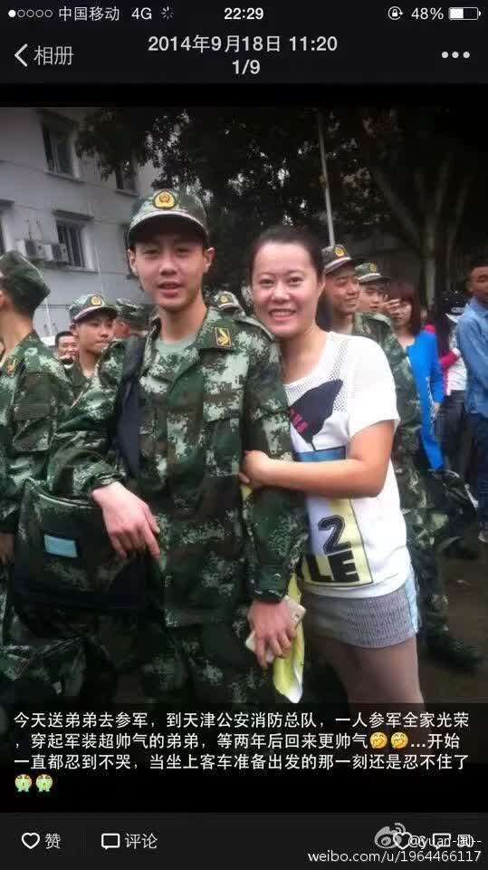 据袁海的家人介绍,2014年9月18日,袁海从家出发去天津公安消防总队报道,算起来参军还不到一年时间。而在袁海姐姐的微博里,还存着送袁海参军时的合照。