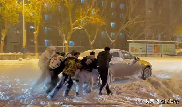 相似一幕同样出现在内蒙古自治区。11月7日晚,内蒙古民族大学东区西门附近,就读于21级蒙医专业蒙西医结合班的10余名学生看到一辆轿车被困雪中,毫不犹豫冲上去帮忙推车,最终助其脱困。