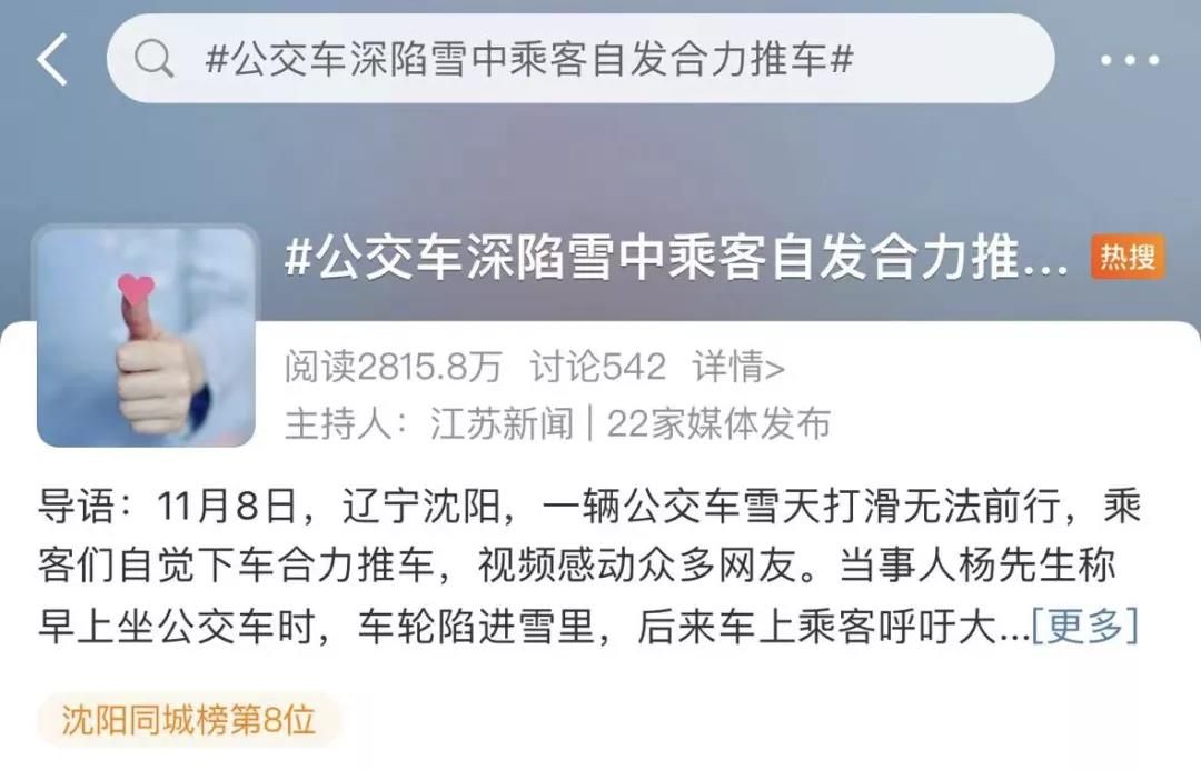 8日,辽宁沈阳一辆公交车雪天无法前行,多名乘客主动下车合力推车↓