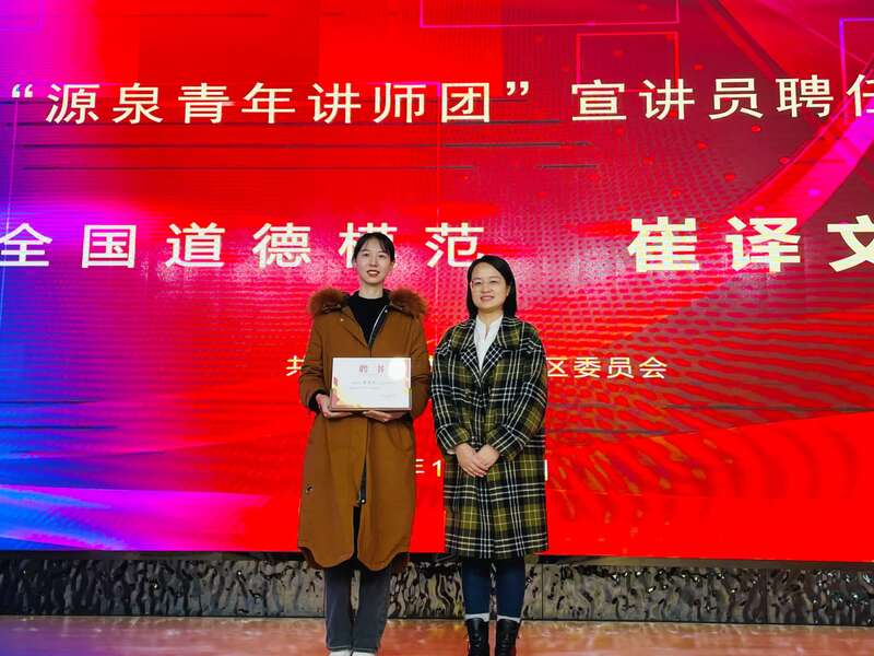 中国青年报客户端讯(中青报·中青网记者 李剑平)近日,共青团宁波市奉化区委举行青年理论宣讲员聘任仪式,正式聘请全国道德模范崔译文为奉化区“源泉青年讲师团”特邀讲师。