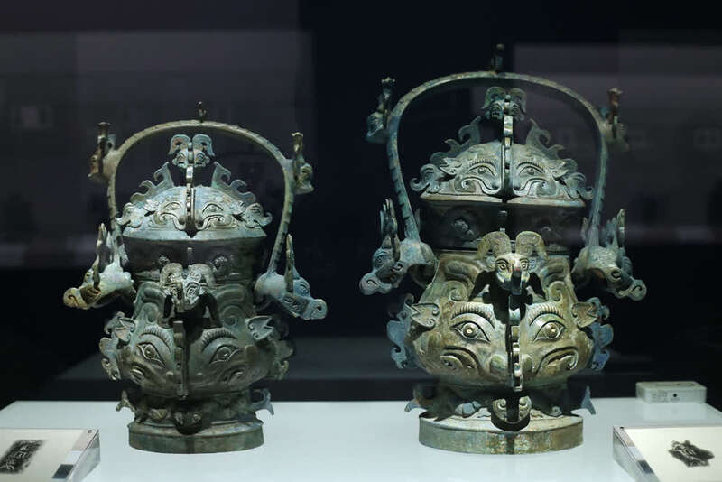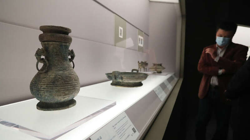 上海博物馆展出的噩国青铜器独特花纹吸引了不少参观者