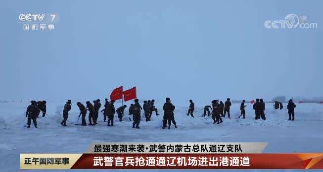 受大范围暴雪天气影响,内蒙古通辽机场6日临时关闭,取消了所有进出港航班。昨天下午,武警内蒙古总队通辽支队接令后,立即动用5台车辆90名兵力携带清雪装具赶赴现场。在通辽机场,大雪覆盖了机场跑道和停机坪,能见度不足50米,积雪厚度40多厘米。武警官兵在大型机械的配合下对机场跑道、停机坪积雪进行清理,预计今天中午恢复运行。