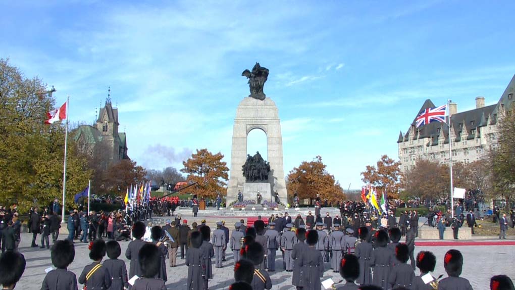 当地时间11月11日,在加拿大首都渥太华国家战争纪念碑前举行的加拿大国殇日(The Remembrance Day)纪念活动被迫推迟。