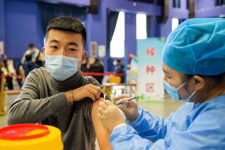 11月12日,在内蒙古自治区呼和浩特市,医务人员为市民接种新冠病毒疫苗。新华社记者李志鹏 摄