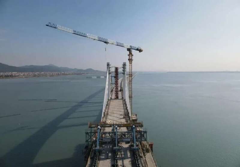湄洲湾跨海大桥是正在建设中的福厦高铁全线重点控制性工程,大桥长14.7公里,海域施工长10.8公里,主桥为预应力混凝土连续刚构矮塔斜拉桥,主跨180米,跨越湄洲湾规划3000吨级航道,设南北两座双柱式主塔,桥面以上塔高30米,共有28根斜拉索。