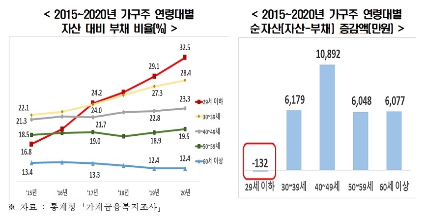 报告解释称,这是因为与其他年龄组相比,年轻人的债务增长速度远快于资产增长速度。