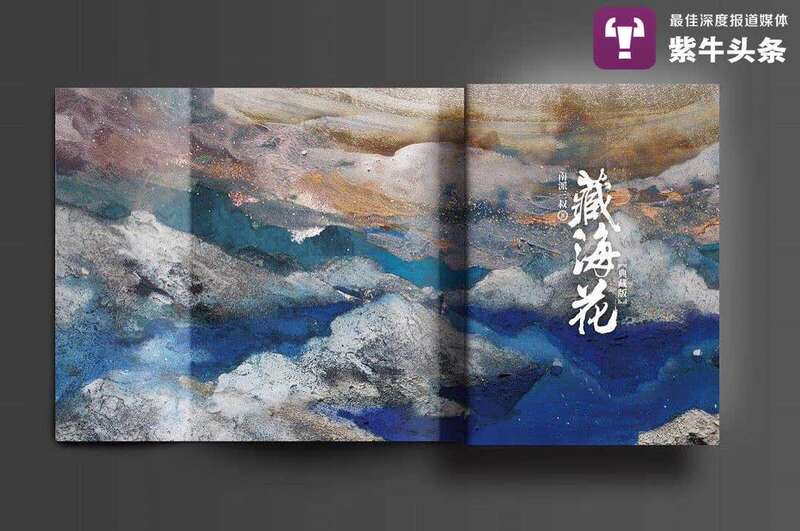 在岩彩画作方面崭露头角后,莲羊逐渐开始接到商业合作的橄榄枝。其中一次重要的合作是为《盗墓笔记》作者南派三叔的新书《藏海花》典藏版绘制封面。当时出版方找到她,转达了南派三叔对这个封面的希望:一座大雪山,一个蓝色的湖泊,要像宝石一样纯净。