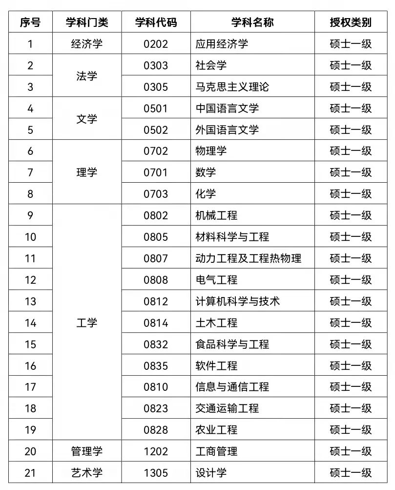 西华大学新增外国语言文学、农业工程、化学3个一级学科硕士学位授权点,金融、教育、新闻与传播、风景园林、艺术5个硕士专业学位授权类别。
