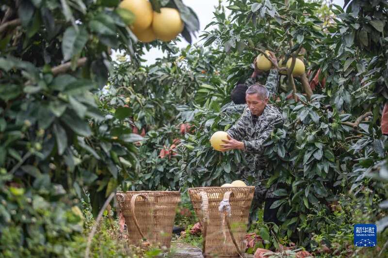 近日,重庆市巫溪县蒲连镇近8000亩蜜柚迎来丰收,当地村民抓紧采摘、打包蜜柚,供应市场。